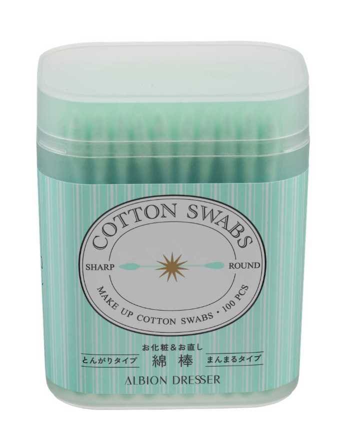 例えば「DRオリジナル綿棒(100本入り)」は、メイク直しにぴったりなアイテム。ミントグリーンのカラーが、パッケージや本体に施されており、日々のメイク直しが気分の上がる時間になります。