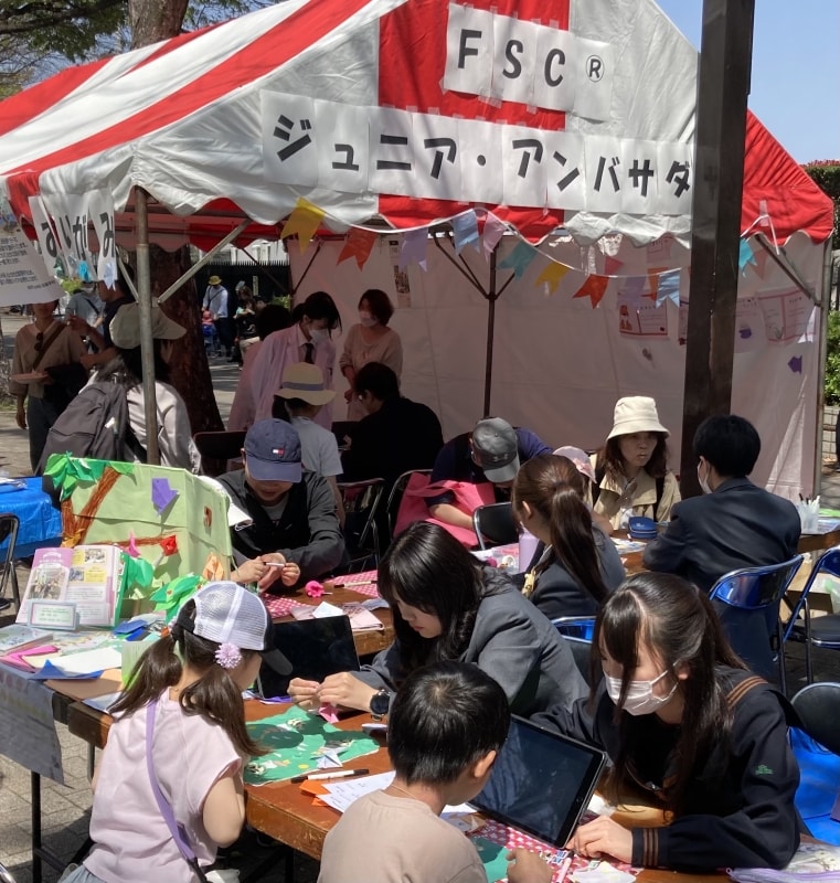 中高生が主体となって進める環境学習の一環として、森林を守るための国際認証「FSC®認証マーク」の普及活動に取り組んでいます。生徒たちが企画するSDGsプロジェクトとして、企業や団体と協力しながら、認証紙を使った日本製おりがみを開発。イベントでのワークショップを通して、消費者が認証製品を選ぶことが森林保全につながることを伝えています。学びを社会に還元する活動として、多くの場で注目されています。