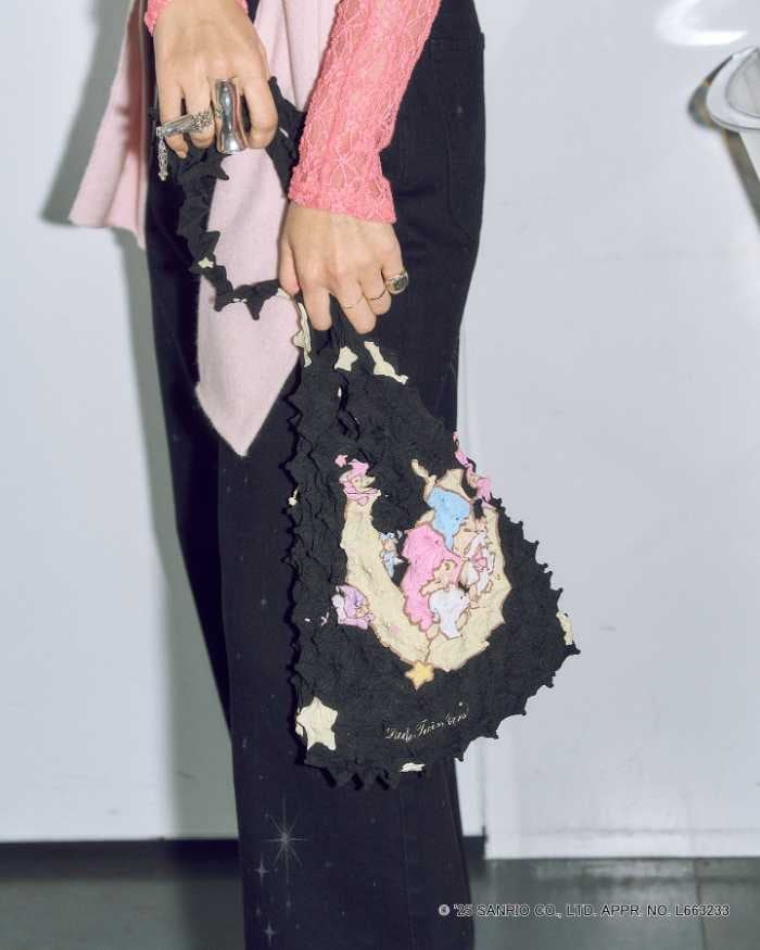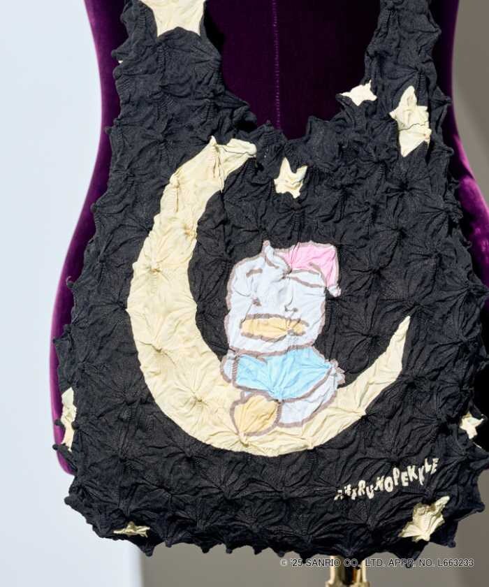 「SPIKY BAG」(ブラック/フリー/¥22,000税込)は絞り加工とプリントで夜空を表現。手荷物を入れるたびに広がる星々のロマンチックな景色が魅力です。