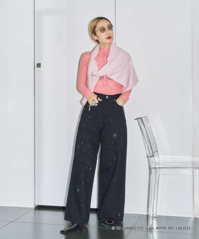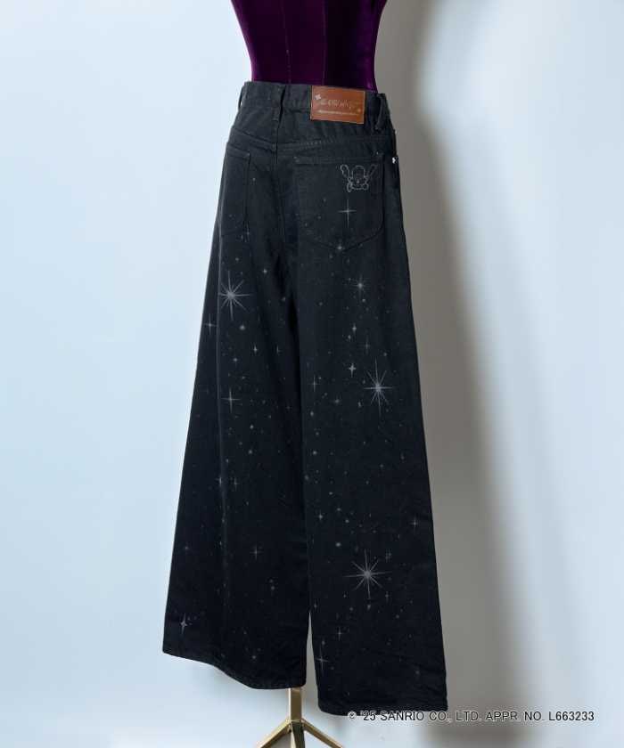 「BAGGY JEANS」(ブラック/サイズ42・44/¥46,200税込)は、レーザーブリーチで夜空に浮かぶ群星と共にキキ&ララ、ペックルを配置。静かな夜空を思わせるデザインです。