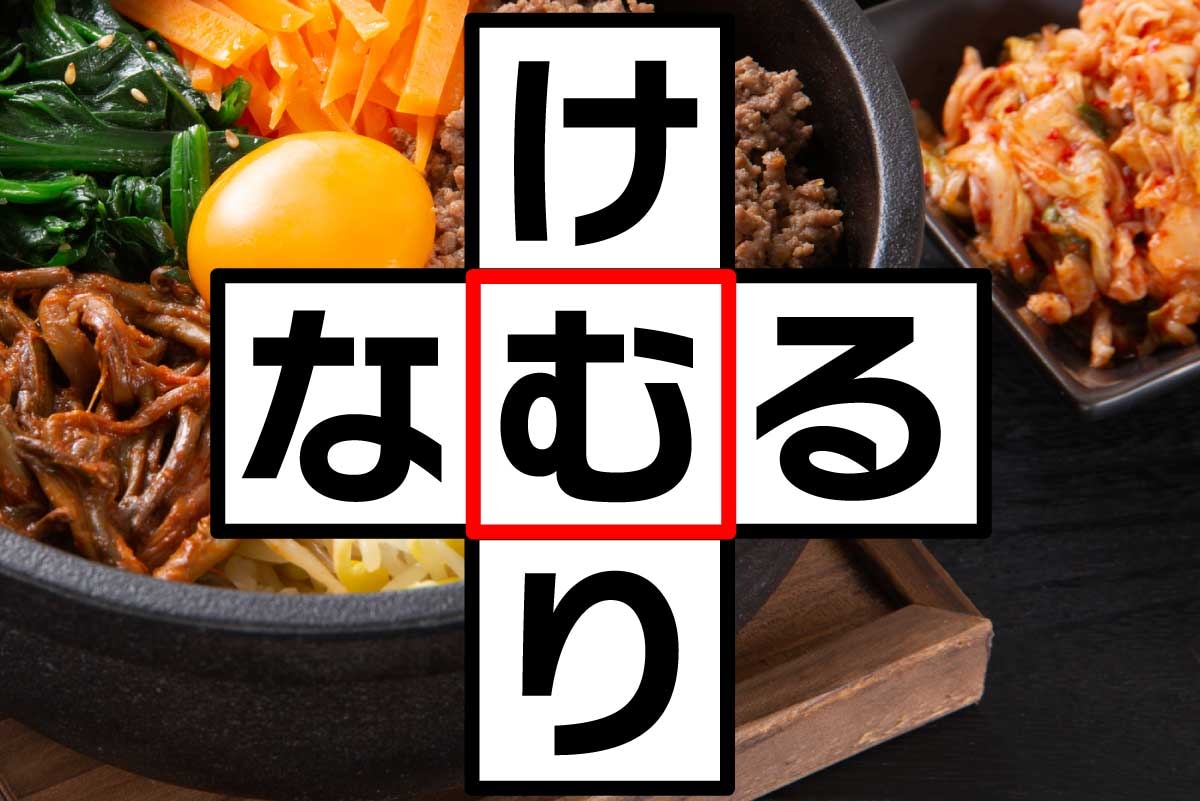 【問題】空欄に入る文字は? 【ヒント】タテ:火をたいたとき、空中に立ちのぼるものは?ヨコ:野菜や山菜を茹でて、ごま油などで味付けしたもの。