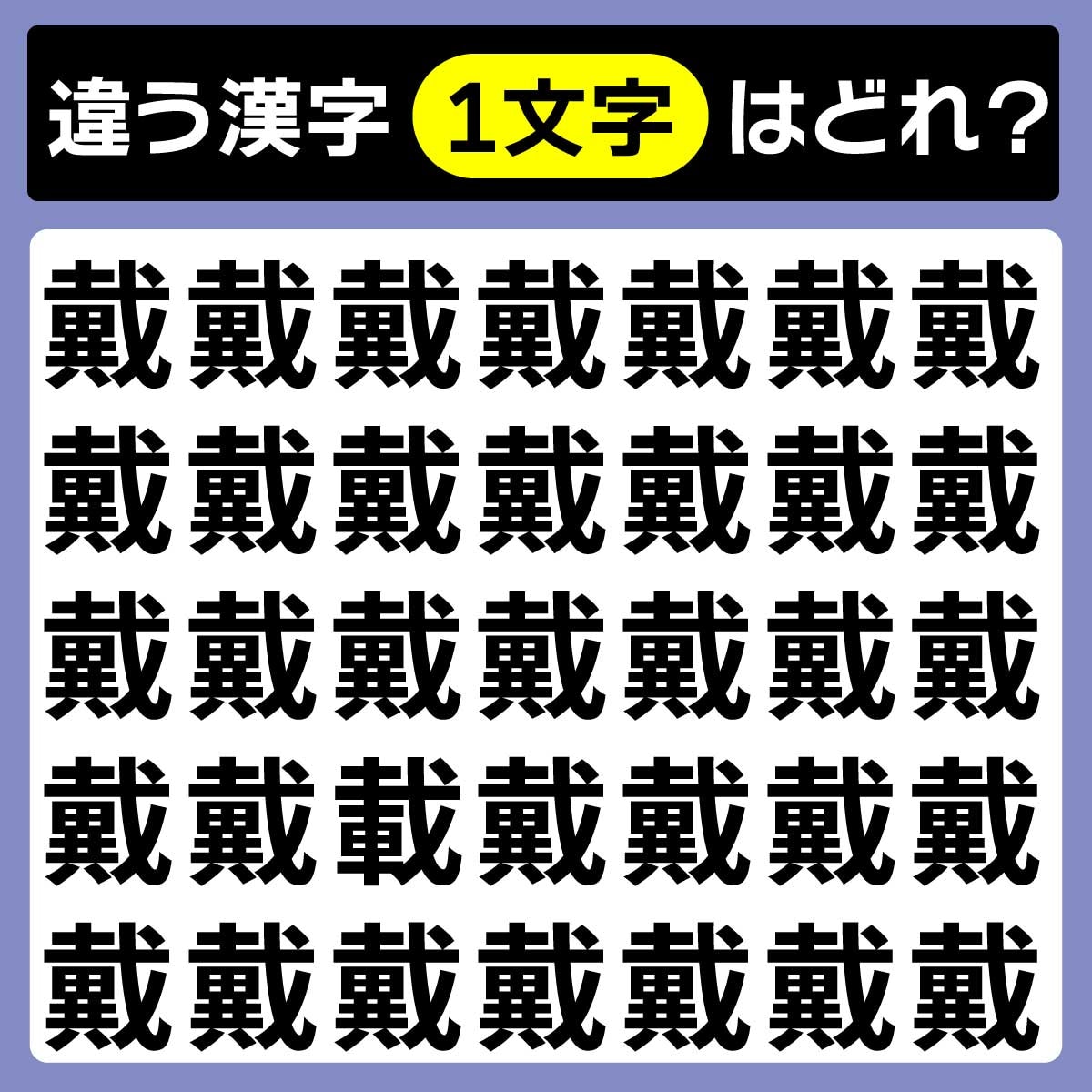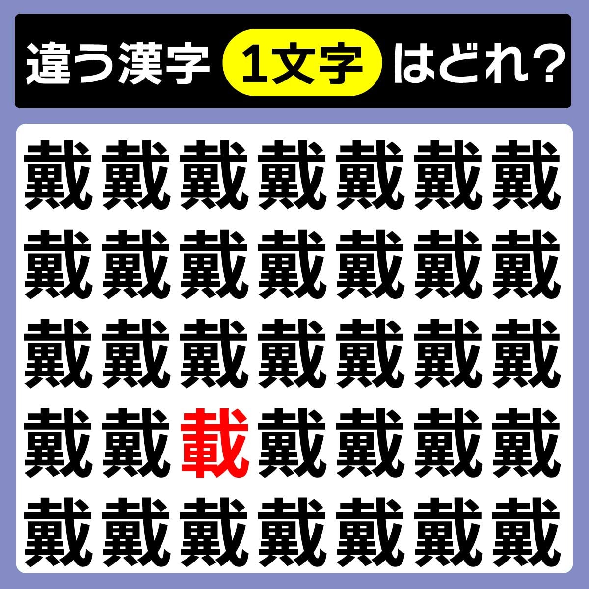 違う漢字は、下から2列目、左から3番目の文字でした!