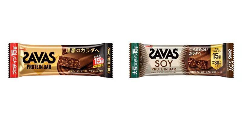 画像は「ザバス プロテインバー チョコレート」と「ソイプロテインバー ビター」