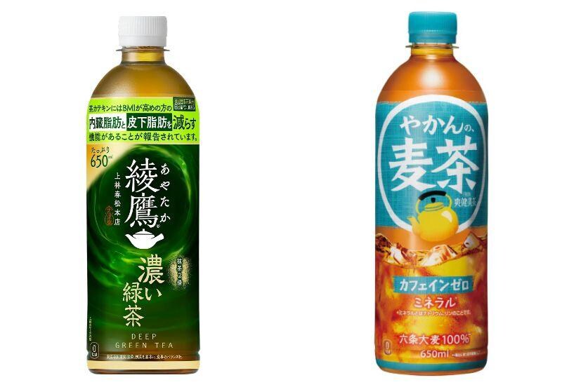 6つめの対象商品は、コカ・コーラ「綾鷹 濃い緑茶」(650ml)と「やかんの濃麦茶」(600ml)です。