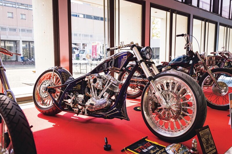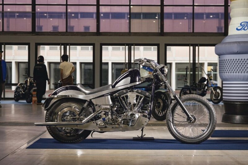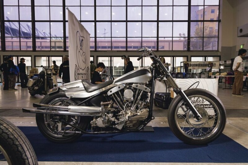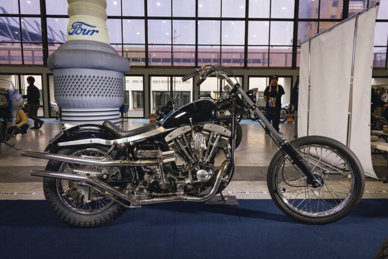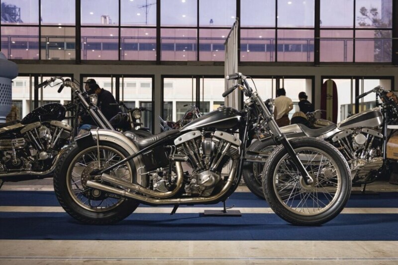 「ヴィダモーターサイクル」を代表するアーリーショベル。この赤いカーペットの上に展示されているのは過去のショーでアワードを獲得した車両。この車両もショーでの受賞や雑誌の表紙を飾ったことがある一台。