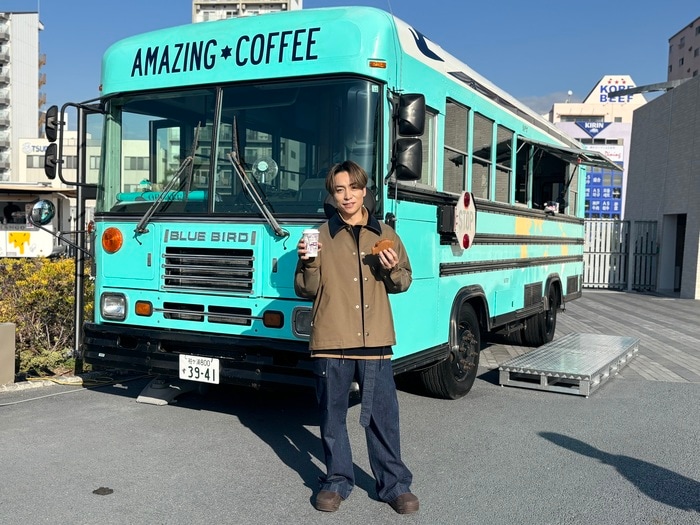 たくさんの海の仲間たちが集まる、神戸の人気スポット「神戸須磨シーワールド」に、EXILE TETSUYA プロデュースコーヒーショップ「AMAZING COFFEE」とのコラボレーション店舗3号店『ORCAFE produced by AMAZING COFFEE』が2025年12月1日にOPEN。神戸須磨シーワールドのメインゲートを入ると、大きなシャチのモニュメントが。そのお隣には、ブルーの大型キッチンカーの「バスくん」が皆さまをお出迎えしてくれます。