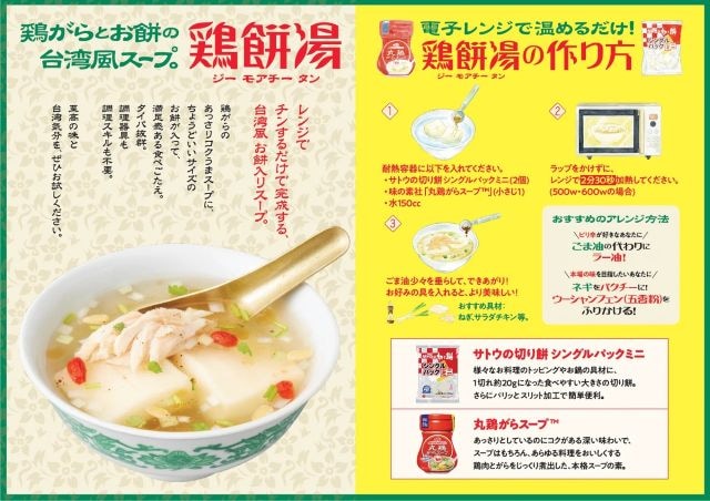 “お餅のある生活をもっと楽しんでもらいたい”という思いから誕生した、「鶏餅湯」。寒い日や料理をしたくない時にもレンジで簡単に調理でき、“3分で完成する台湾風餅入りスープ”です。