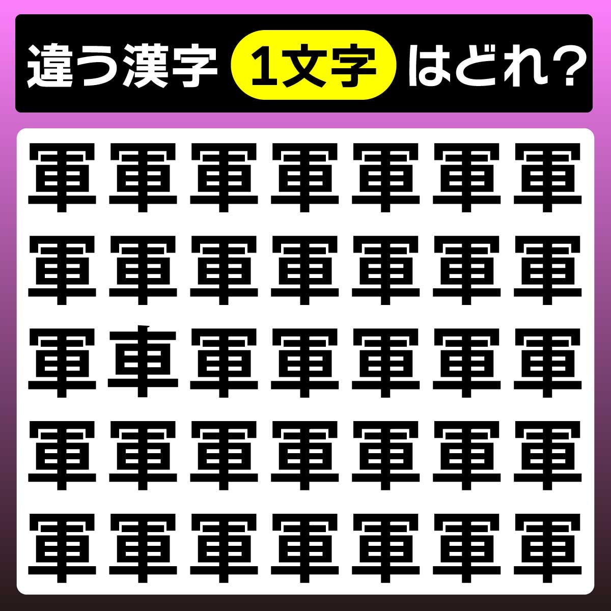 違う漢字は、上から3列目、左から2番目の文字。