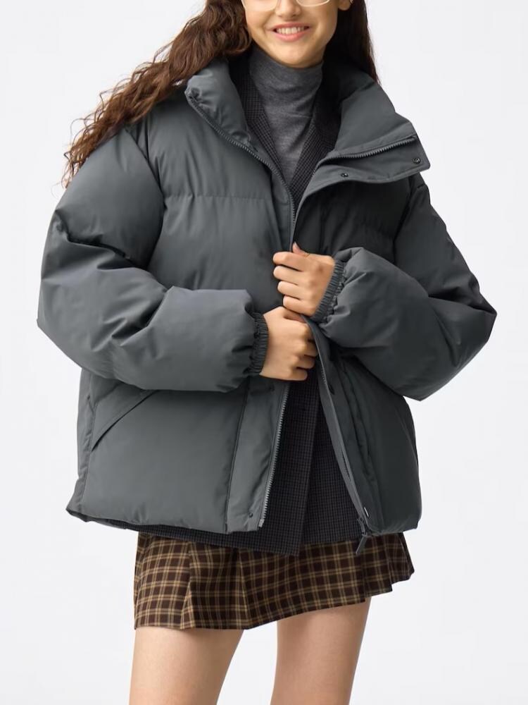 短めの丈と丸みのあるシルエットで、まとまりのあるバランスの良いコーディネートに仕上がります。