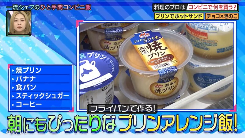 そんなORIGINのシェフは、「毎日食べるくらい好き」な焼きプリンのほか、バナナ、食パン、スティックシュガー、コーヒー粉末をコンビニで購入。プリンをカスタードクリーム代わりにした、濃厚なフレンチトーストを作った! 試食した西田は、「バナナの香りがえらいしておいしいですね!」と笑顔だ。