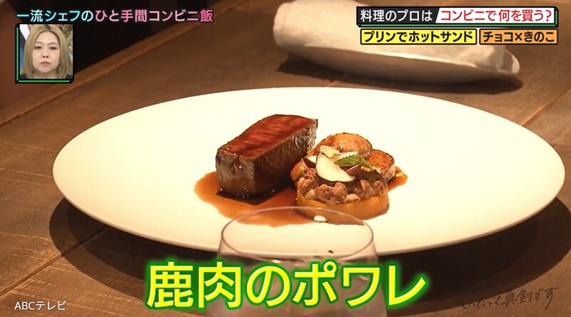 「⼀流シェフのコンビニアレンジ飯」企画では、どのシェフもコンビニアレンジ料理を作る前に、自分の店の料理を西田に振舞ってくれる。ORIGINのシェフも、鹿肉とフォアグラを赤ワインのソースでいただく自慢のポワレを提供してくれたため、西田は大喜び!