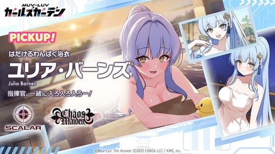 合同会社EXNOA(本社:東京都港区、CEO:東條 寛、URL:https://games.dmm.com/)と株式会社KMS(本社:東京都品川区、代表:梶原 健太郎、URL:http://kms3.com/ )が贈るマブラヴ最新作『マブラヴ ガールズガーデン』(以下、マブガル)が12月2日(火)より、新衣装の「ユリア・バーンズ」【はだけるわんぱく浴衣】が登場しました。