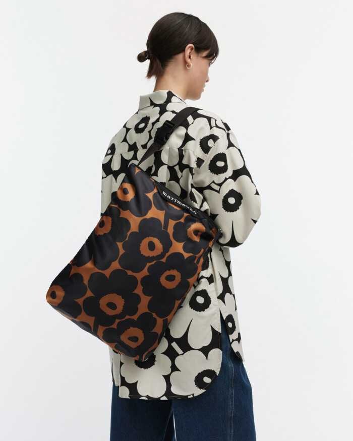Neat bagはパッカブル仕様で機能性とデザイン性を兼ね備えたシリーズ。今回の日本限定モデルは、秋を感じさせるブラウン×ダークネイビーのUnikko柄。