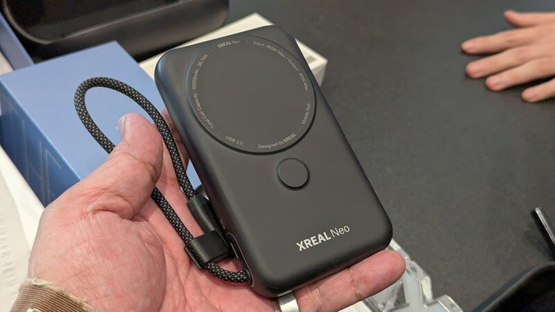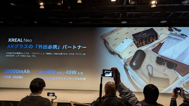 ARグラスを接続する前提で設計したモバイルバッテリー「XREAL Neo」も同時に発表。こちらも同日から予約販売を開始しています。10000mAh容量でARグラスを接続するUSB-Cポート、スマートフォンやゲーム機などのデバイスを接続するUSB-Cケーブルを搭載。最大60Wで出力できます。スマホの背面に吸着できるマグネットを搭載しますが、ワイヤレス充電には非対応。