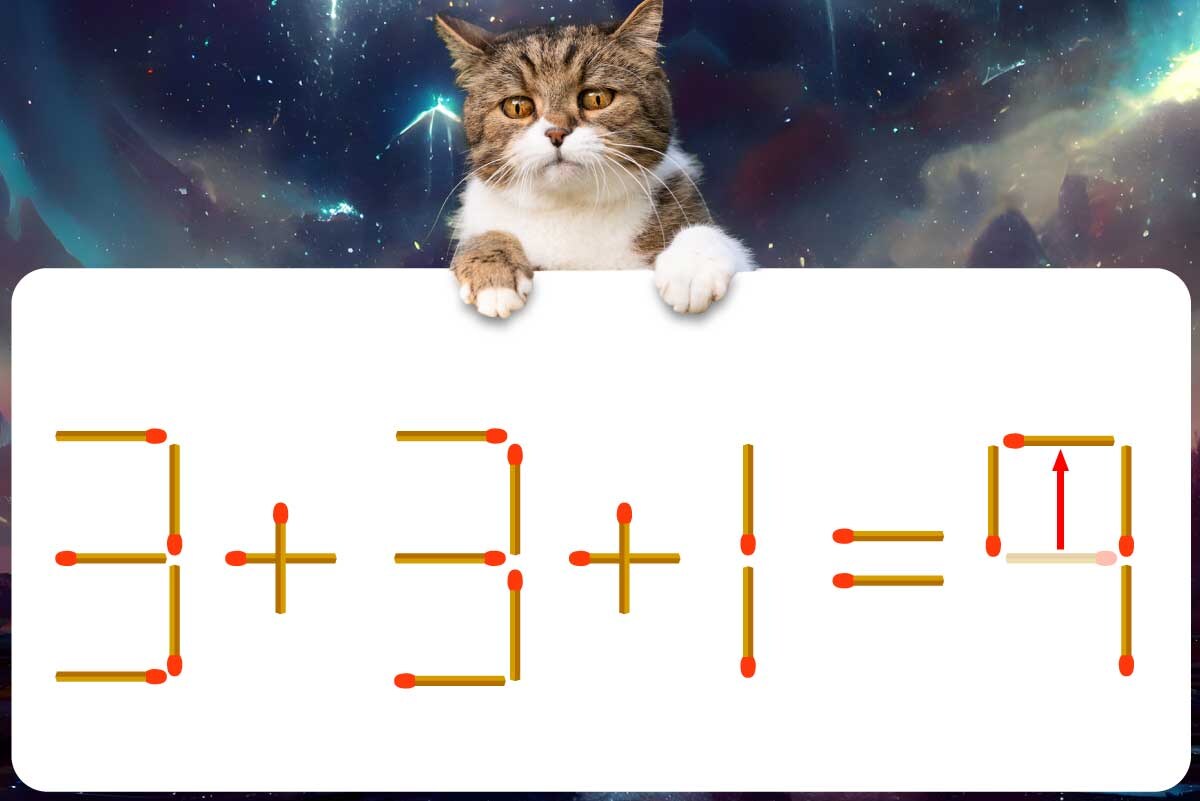 【問題】マッチ棒を1本動かして式を正しくしてください。