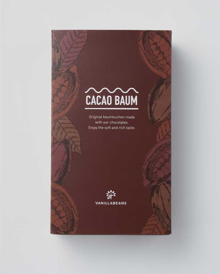 「カカオバウム」は標準価格1,728円(税込)。VANILLABEANSがカカオ豆の選定・焙煎からこだわったスペシャリティチョコレートを生地に混ぜ込み、丁寧に焼き上げたバウムクーヘンです。
