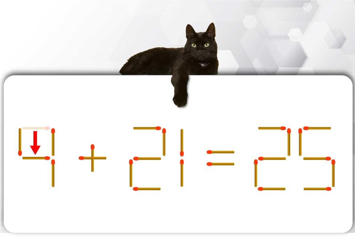 「7」のマッチ棒を1本、移動させて「4」を作り「4+21=25」にする。※解答は複数ある場合があります。