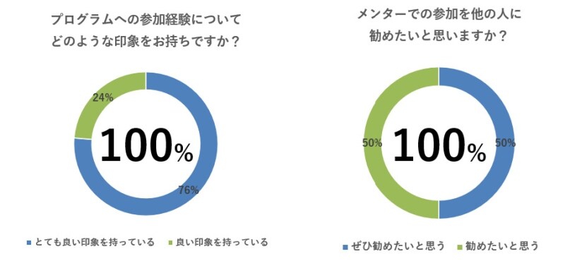 メンタリングを受けたNPO職員の多くが、活動に良い変化が生まれたと感じています。前年度の調査では、支援を受けた団体の満足度が100%、さらに9割が「今後の活動にポジティブな影響があった」と回答しました。日々の業務や悩みを整理することで、気持ちの余裕が生まれたり、次に踏み出すための視点が広がったりする効果が見られたようです。