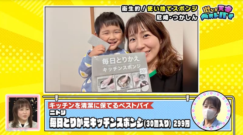 3歳の子どもを連れたママのベストバイは、ニトリの毎日とりかえキッチンスポンジ。キメが荒くできているので、泡立ちはバッチリです。「1つで食器を洗ってシンクもキレイにして捨てられる」ため、ママはキッチンをいつも清潔に保てているのだとか!