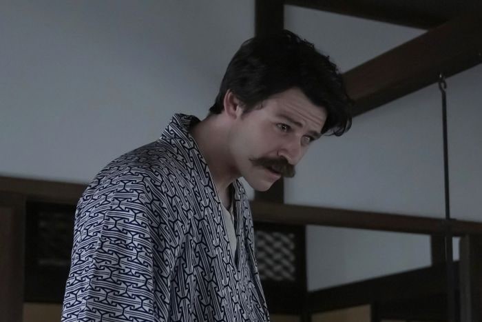 ヘブンが小谷に、「私が死んでも悲しまないで。ただの通りすがりの異人です」とおトキに伝えるよう言います。「通りすがりの異人」という言葉に一抹の寂しさを覚えるおトキ。表情がなんともいえません。