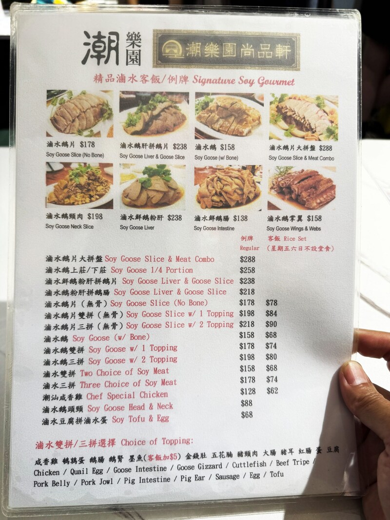 オーダーした料理は「ガチョウ煮込み3点セット」(Three Choice of Soy Meat)で、価格は約4400円。やや高めの値段設定って思えるでしょう? でも、出てくるビジュを見たらそう思わないはず。とことん、ガッツリ、肉、肉、肉! しかもガチョウです!!