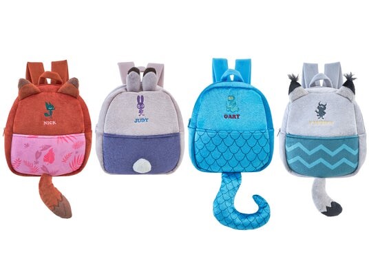 ニック、ジュディ、ゲイリー、パウバートをイメージしたリュック。