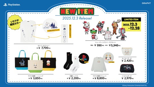 今年の「プレイステーションの日」には、初代PlayStation(R)の「PlayStationファミリーマーク」をあしらった厚手刺繍ソックスや、「どこでもいっしょ」のサガラ刺繍アイテムなど、冬を温かく過ごせる新作アイテムを発売します。