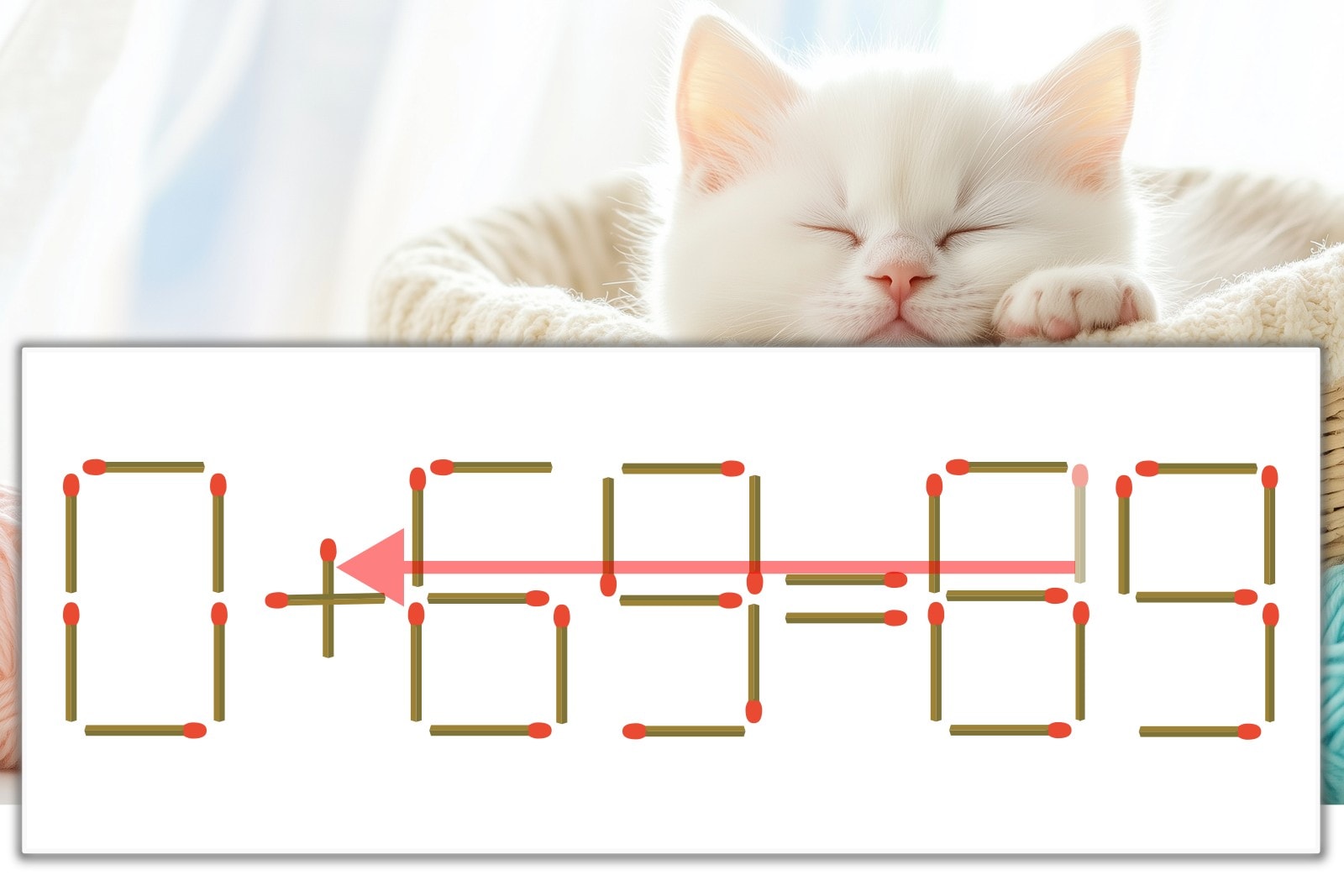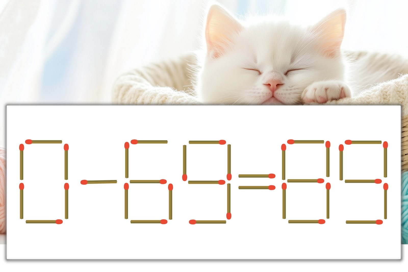 「8」を別の数字に変化させると答えが導き出せます。「8」のマッチ棒を1本移動して、「-」を「+」にしてみましょう。すると、「0+69=69」が成立します。