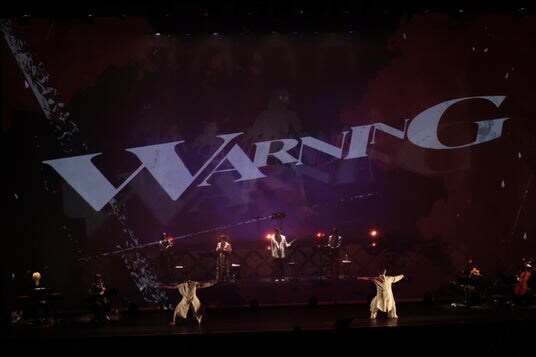 紗幕を使った映像演出も印象的。ガリカが飛び回る様子や、戦闘時の攻撃演出などが紗幕に映し出され、没入感をいっそう高める。とくに正体不明の怪物ニンゲンがステージ上に映し出される瞬間は圧巻で、その歪な恐ろしさを目の当たりにすることができる。