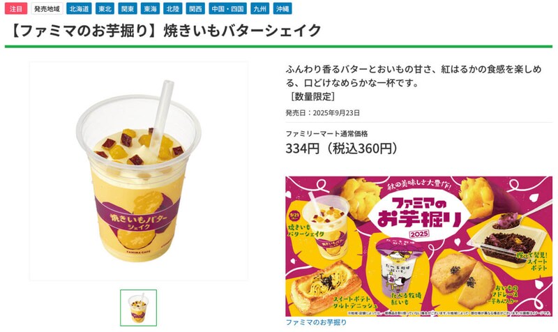 「焼きいもバターシェイク」の価格は、360円(税込)です。