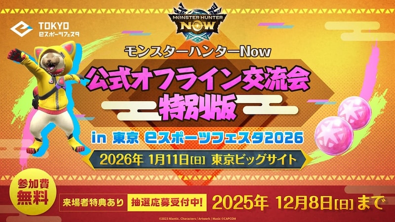 位置情報ゲーム『モンハンNow』の公式オフライン交流会が2026年1月、東京ビッグサイトで開催される“東京eスポーツフェスタ”にて行われることが決定。