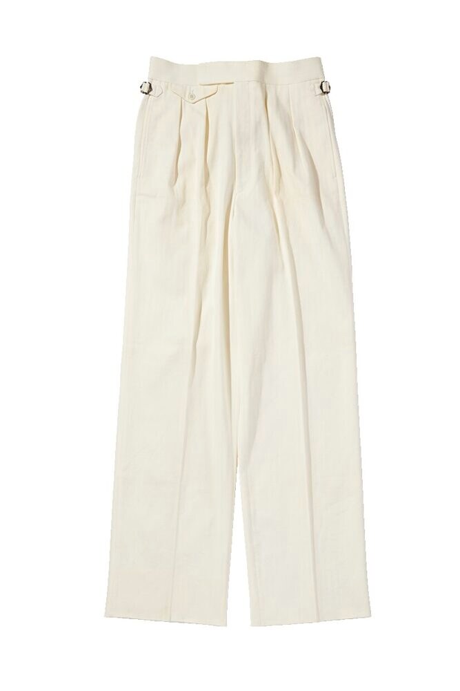 1930年代頃のブリティッシュトラッドを再現していた「ドレイパーズベンチ」在籍時代。定番だったこのワイドパンツは、当時の縫製工場担当者からお借りした。