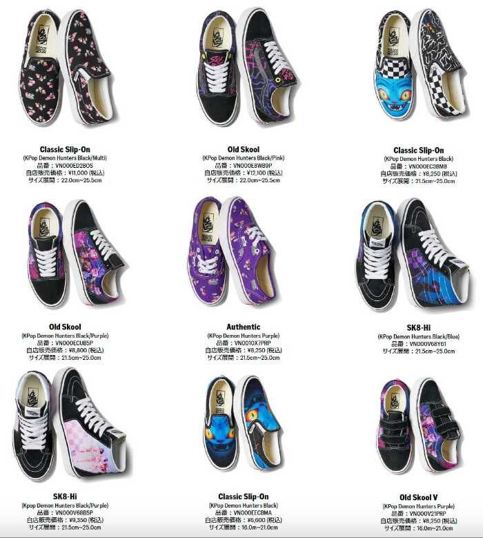 「Vans x K-Pop Demon Hunters」コレクションは、大人からキッズまで楽しめるファミリーサイズ展開となっています。