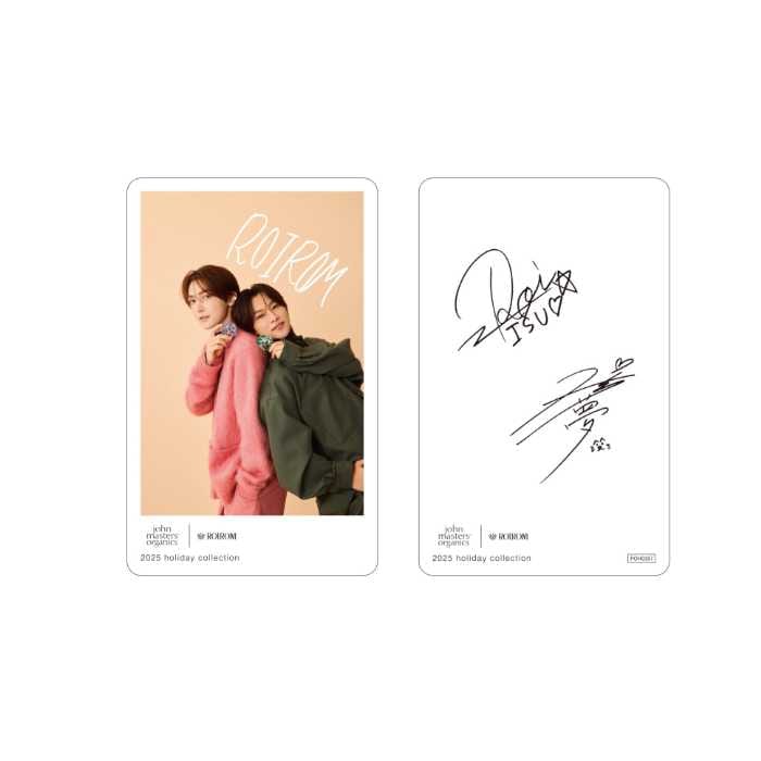 直営店または公式オンラインストアで税込11,000円以上のお買い物をすると、ROIROMのオリジナルフォトカードを1枚プレゼント!カードはAとBの2種類があり、デザインが異なります。