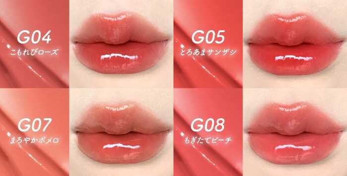 カラーはG04こもれびローズ、G05とろあまサンザシ、G07まろやかポメロ、G08もぎたてピーチの全4色。価格は800円(税込880円)。