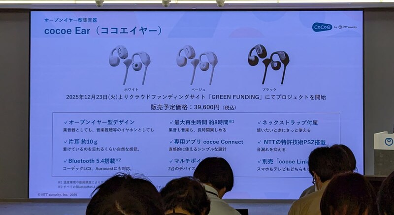 GREEN FUNDINGのプロジェクトは12月23日10時に公開します。cocoe Earの販売予定価格は3万9600円(税込)。クラファンでは30%OFFの2万7720円(税込)で販売するコースも用意しています。