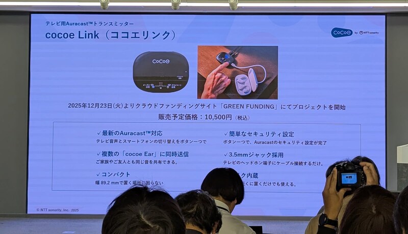 cocoe Linkの販売予定価格は1万500円(税込)。クラファンではcocoe Earとのセットで35%OFFの3万2565円(税込)で販売するコースを用意しています。