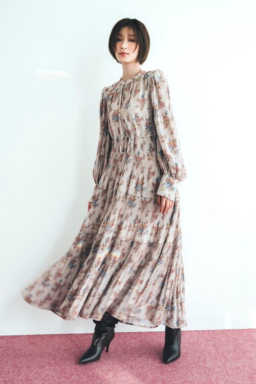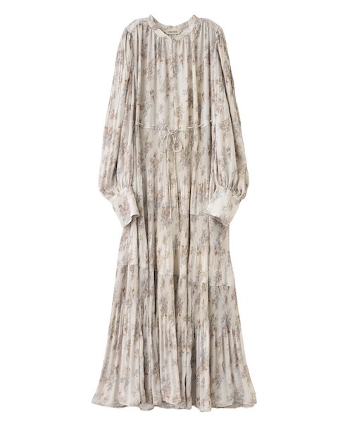 ヴィンテージライクなフラワープリントを施したワンピース。寒い時期にも着られるように透け感が程よいジョーゼット素材を使用。