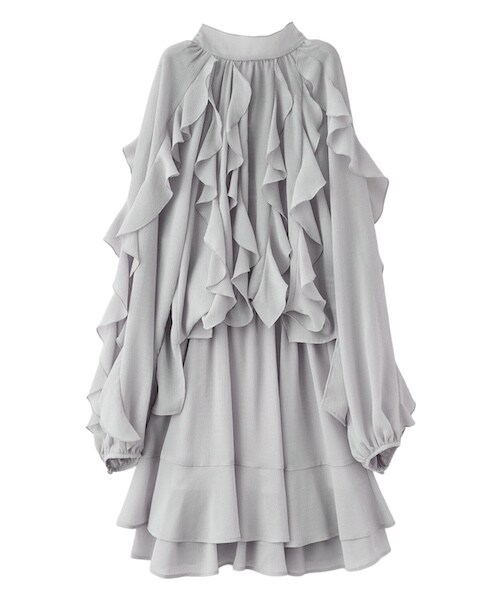 ふんだんなフリルが特徴的なミニワンピース。