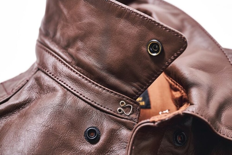 台襟を装備し、細やかな箇所もオリジナルを忠実に再現、フライトジャケットファンも納得の仕上がりとなっている。素材にはベジタブルタンニン鞣しの馬革を採用。正直に書くと、袖や裾のニット部分は、オリジナルとは違いアクリル混紡のものを使うなどコストカットが図られているが、新作ではウールの混合率を上げて膨らみを整えている。