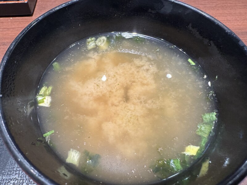 豚丼を販売している店舗を発見し、さっそく税込1111円セットに挑む。牛丼小盛、豚丼小盛、玉子、みそ汁(あおさ入り)をタッチパネルからオーダー。待たずして、すぐにテーブルにやってきた税込1111円セット。