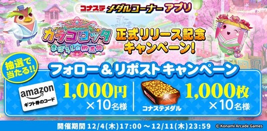 『コナステ メダルコーナー』アプリ ダウンロードコンテンツ「カラコロッタ まぼろしの桃源郷」フォロー&リポスト キャンペーン 概要