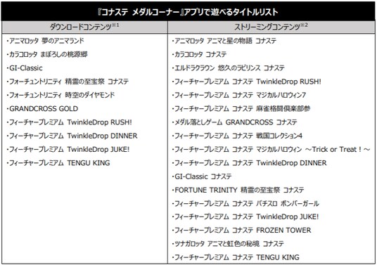 ぜひこの機会に『コナステ メダルコーナー』をダウンロードして、KONAMIのメダルゲームをお持ちのスマートフォンでお楽しみください。