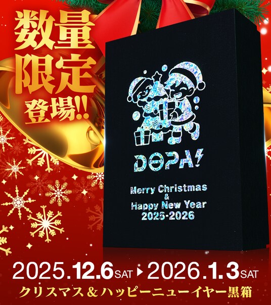 ※本キャンペーンは予告なく内容を変更・終了する場合があります。予めご了承ください。※弊社規定に基づき送付させていただきます。なお、『期間限定クリスマス&ハッピーニューイヤー黒箱』は在庫がなくなり次第終了とさせていただきますので予めご了承ください。