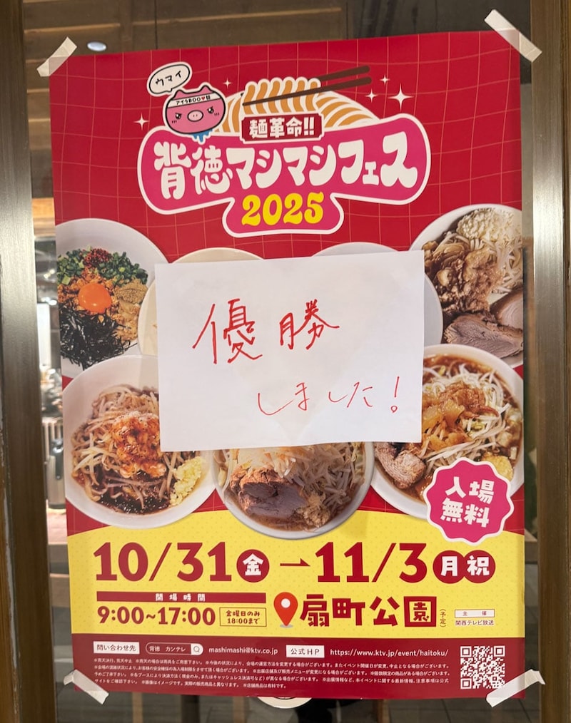 10月31日から11月3日にかけて、大阪の扇町公園にて開催された「麺革命!!背徳マシマシフェス 2025」。関西テレビ(関テレ)主催で行われたこちらのフェス、多くの方が訪れ大盛況だったとのことである。