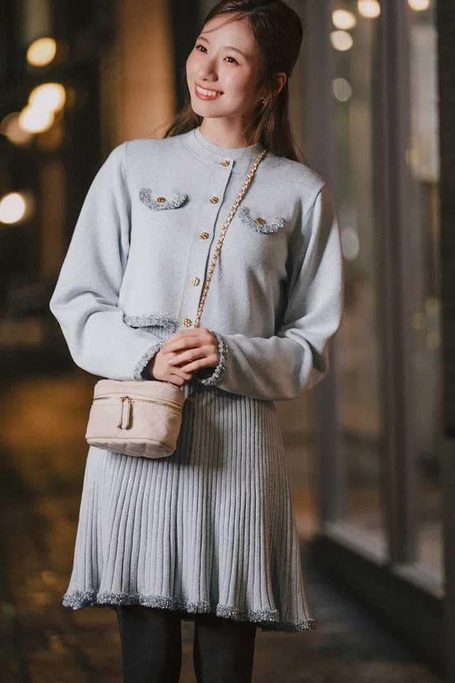 最後にチェックしたいのは、冬に欠かせないアウター&小物。CARDIGAN×ONE-PIECE SET(15,400円)は、きちんと感と可愛さのバランスが絶妙で、特別な日にもおすすめ。