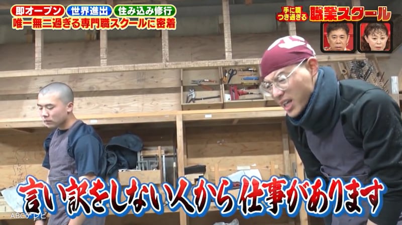 紹介されたのは、7日間で明日にでも開業できるレベルになる“ラーメン学校”、3ヵ月で職人レベルになる“寿司大学”、3年間住み込みで修行して即戦力になる“宮大工(神社・仏閣を修繕・建築する大工)塾”の3つだ。中でもなるみは、宮大工塾の厳しさに「無理無理無理! 息子はようやれん!」と悲鳴を上げつつ、一生懸命な塾生のことを本当の息子のように応援した。