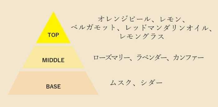 オレンジピール、ベルガモット、マンダリン、レモンが織りなす爽やかで清潔感のある香りは、上質な深みも感じられるシグネチャー。