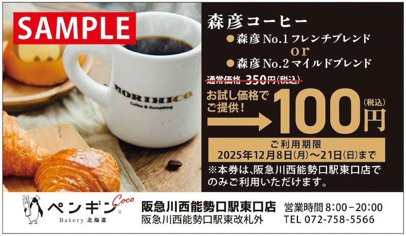 そして12月5日(金)~12月7日(日)の期間中は、オープン記念特典として商品を税込500円以上購入した人に、コーヒーが1杯100円で飲めるチケットをプレゼント! 各日先着400枚限定で配布され、チケットの利用期間は12月8日(月)~12月21日(日)となります。