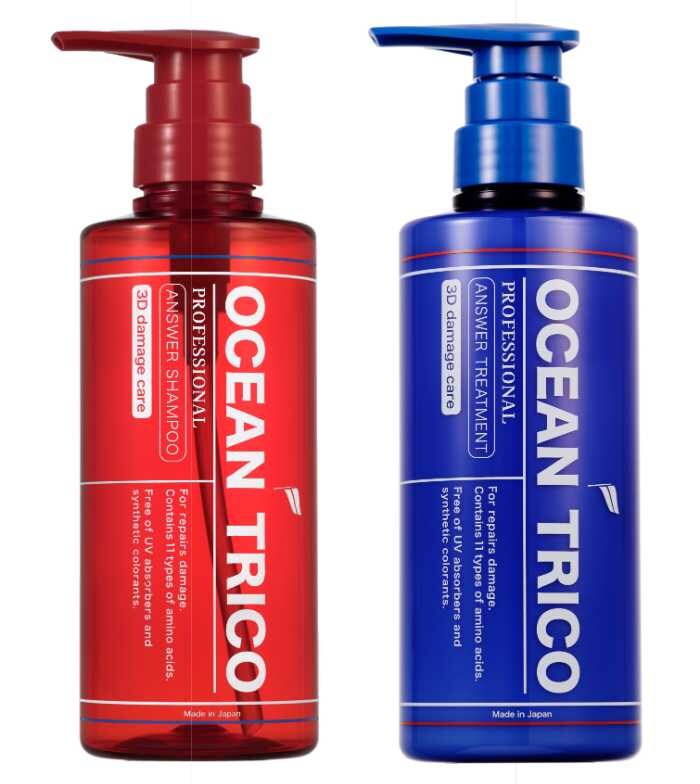「オーシャントリコ アンサー シャンプー&トリートメントR」は、髪の悩みに応える進化したヘアケア製品です。コラーゲン系、ケラチン系、シルク系の洗浄成分を使用し、しっとりとした洗い心地を実現。